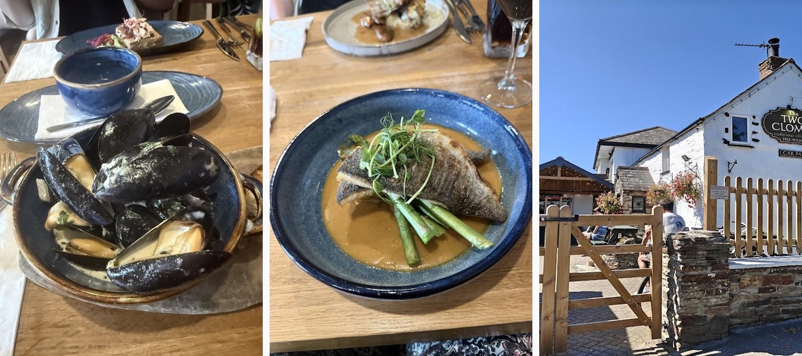 The Two Clomes specializes in traditional Cornish cuisine, highlighting high-quality local produce. Dishes range from fresh seafood platters to hearty roasts.
